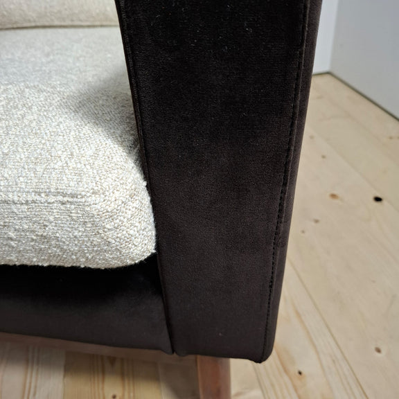 Coppia di Poltrone Vintage Rivestite in Velluto Hermès e Bouclé di Lino – Mid-Century Modern