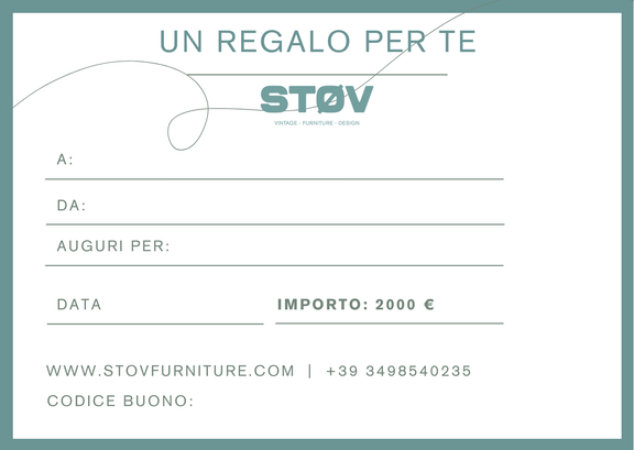 Regala la libertà di scegliere con la Gift Card STOV da 250€. Perfetta per chi ama il design vintage e l'arredamento di qualità, consente al destinatario di selezionare i pezzi che preferisce dal nostro catalogo esclusivo. Valida su tutti i prodotti del nostro store online, è il regalo ideale per gli amanti dell'interior design e del vintage furniture. Consegna istantanea via email, nessuna scadenza.