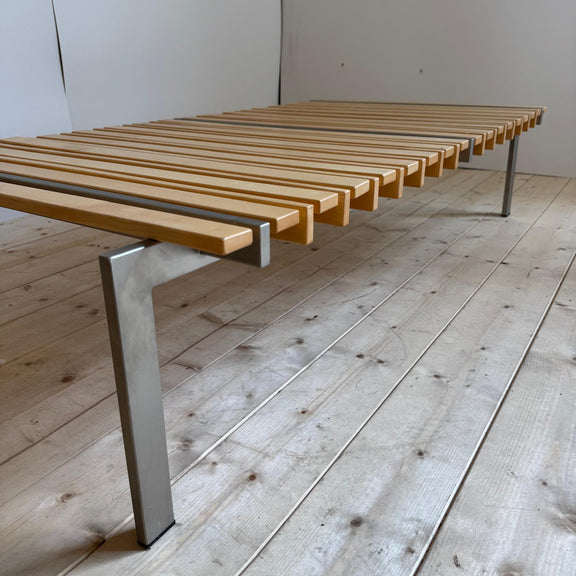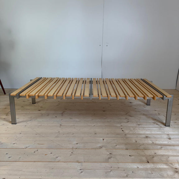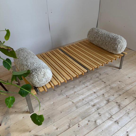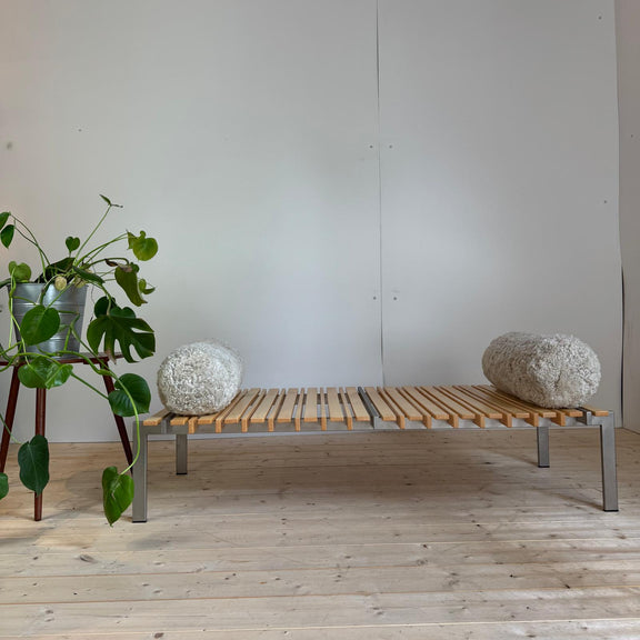 Panca in legno e metallo con cuscini - Danimarca 1970