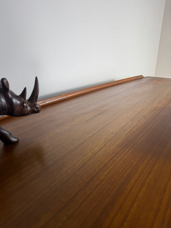 Materiale: Realizzato in pregiato Teak impiallacciato con tonalità calda e uniforme, tipica dell'artigianato danese di alta qualità.