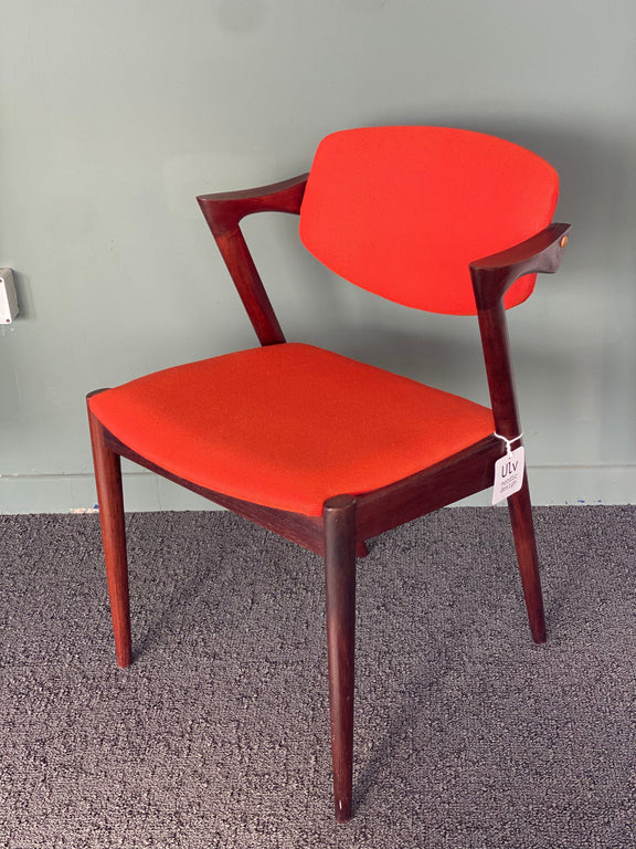Sedia Modello 42 in Teak di Kai Kristiansen – Vintage con Rivestimento Arancione