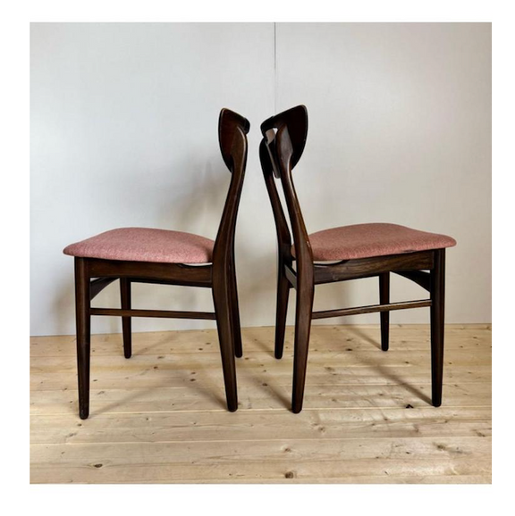 Queste sedie nascono in un’epoca d’oro del design danese, quando funzionalismo e bellezza dialogavano attraverso materiali nobili e lavorazioni impeccabili. Ideali attorno a un tavolo importante o come accento sofisticato in un interno colto, rappresentano una scelta di valore per collezionisti e amanti dell’arredamento vintage originale. Un set coerente, autentico e di grande presenza scenica.