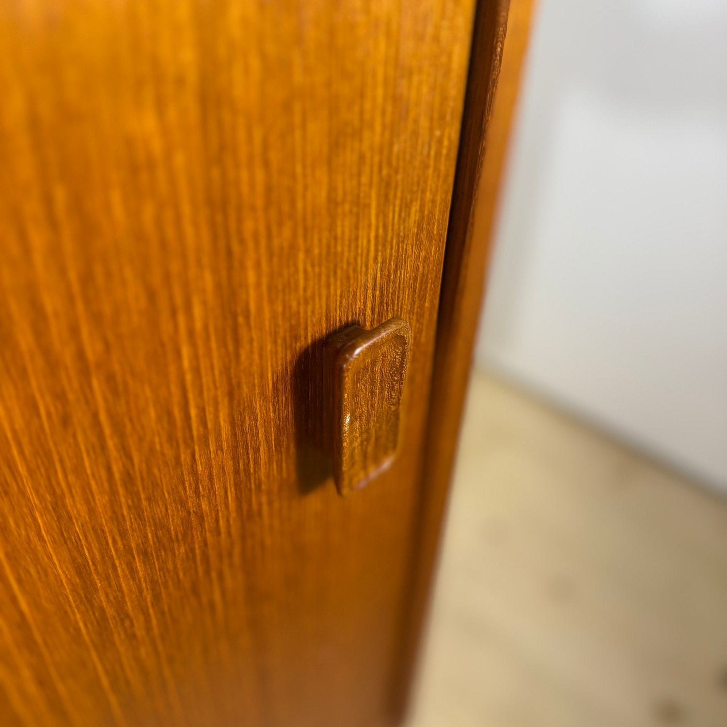 Realizzato in pregiato teak, il mobile esprime tutta la qualità costruttiva tipica dell’artigianato scandinavo del periodo. Le venature calde e omogenee, la cura dei dettagli e la disposizione interna degli spazi – con ripiani e vani studiati per la massima praticità – lo rendono ideale per living contemporanei, zone dining e ambienti contract di alta gamma.