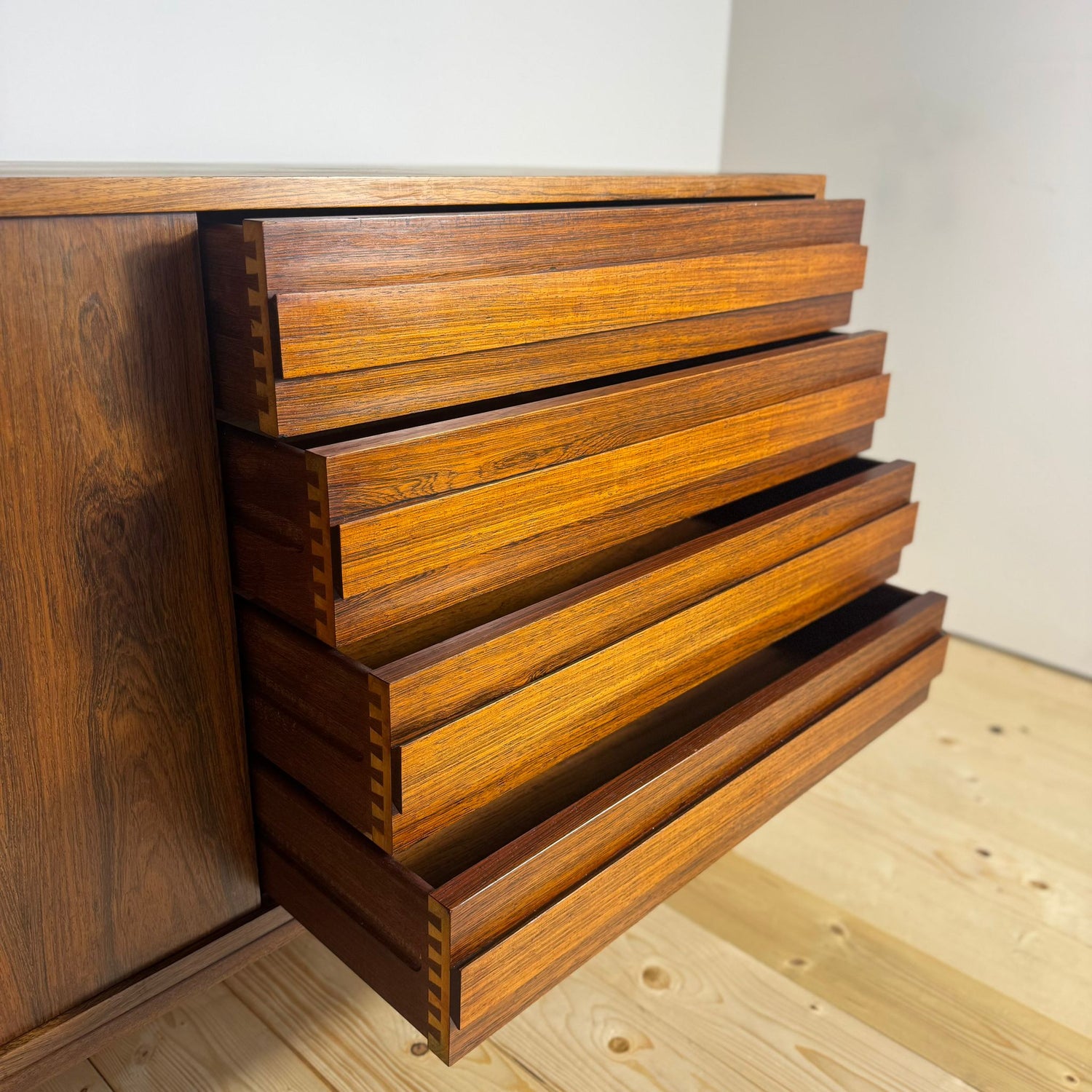 Sideboard danese anni ’60 in palissandro – ante scorrevoli e cassetti