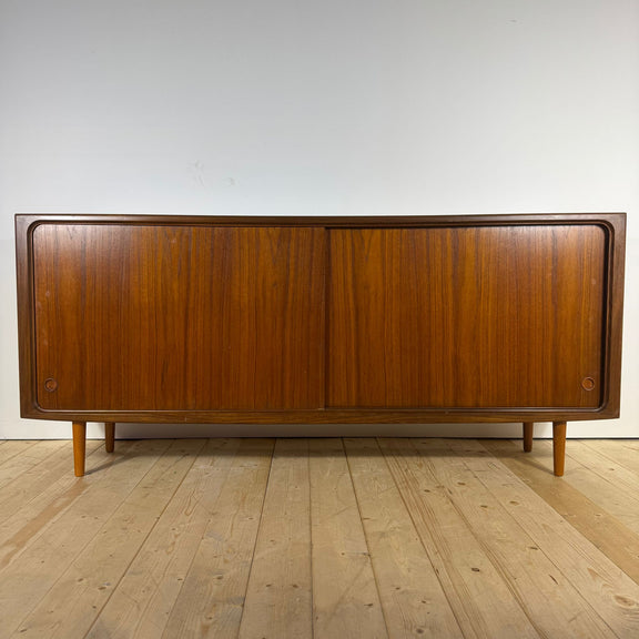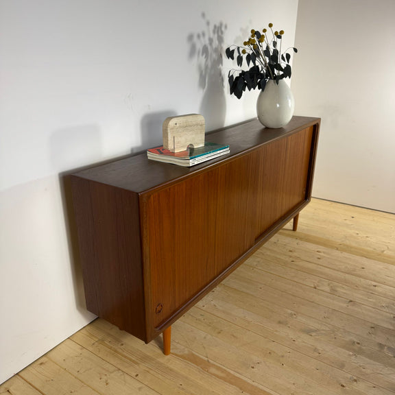 Questo sideboard in teak con ante scorrevoli è un autentico esempio di design Mid-Century Modern scandinavo, databile agli anni ’60. La struttura essenziale, equilibrata e funzionale riflette la filosofia nordica dell’epoca, dove estetica e utilità convivono in perfetta armonia. Il teak, legno nobile e profondamente espressivo, valorizza il mobile con una venatura calda e uniforme, capace di arricchire lo spazio senza imporsi. Le ante scorrevoli rivelano vani contenitivi ben organizzati, ideali per un living raffinato, una sala da pranzo o uno studio contemporaneo. Pensato per ambienti colti e misurati, questo sideboard si integra con naturalezza sia in interni moderni che in contesti più classici. Un pezzo originale di arredamento vintage, selezionato per chi apprezza il design scandinavo autentico e senza tempo.