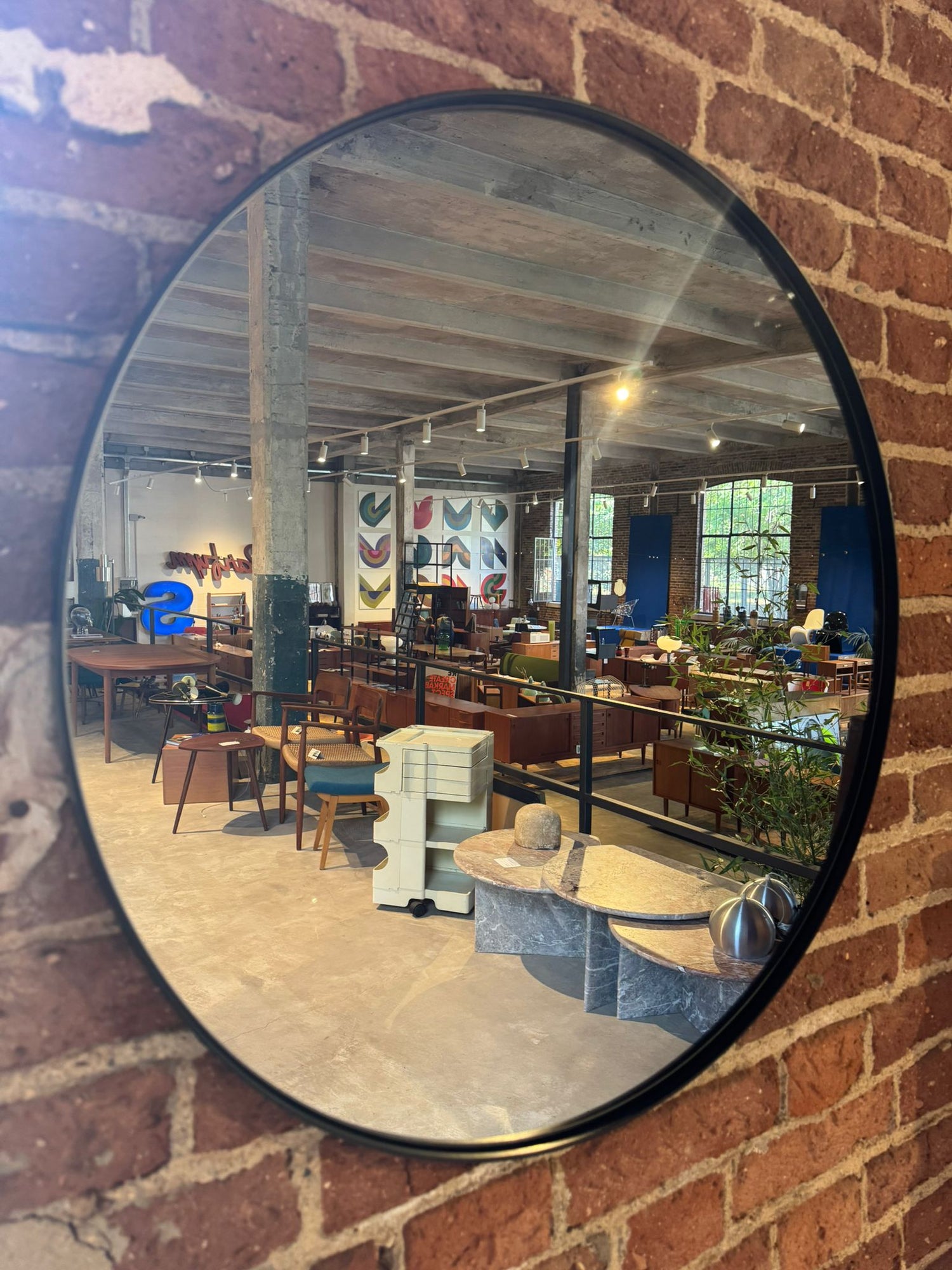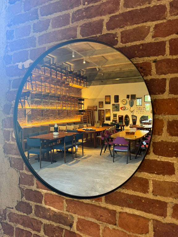 Specchio rotondo vintage con cornice nera, un accessorio dal design essenziale e versatile. La forma circolare pura e la cornice scura creano un contrasto elegante, perfetto per interni moderni e retrò. Questo pezzo combina semplicità formale e impatto visivo, aggiungendo carattere e profondità agli spazi. Ideale per chi apprezza il design minimalista e ricerca complementi d'arredo originali che uniscono funzionalità e stile senza tempo, con qualità costruttiva autentica.