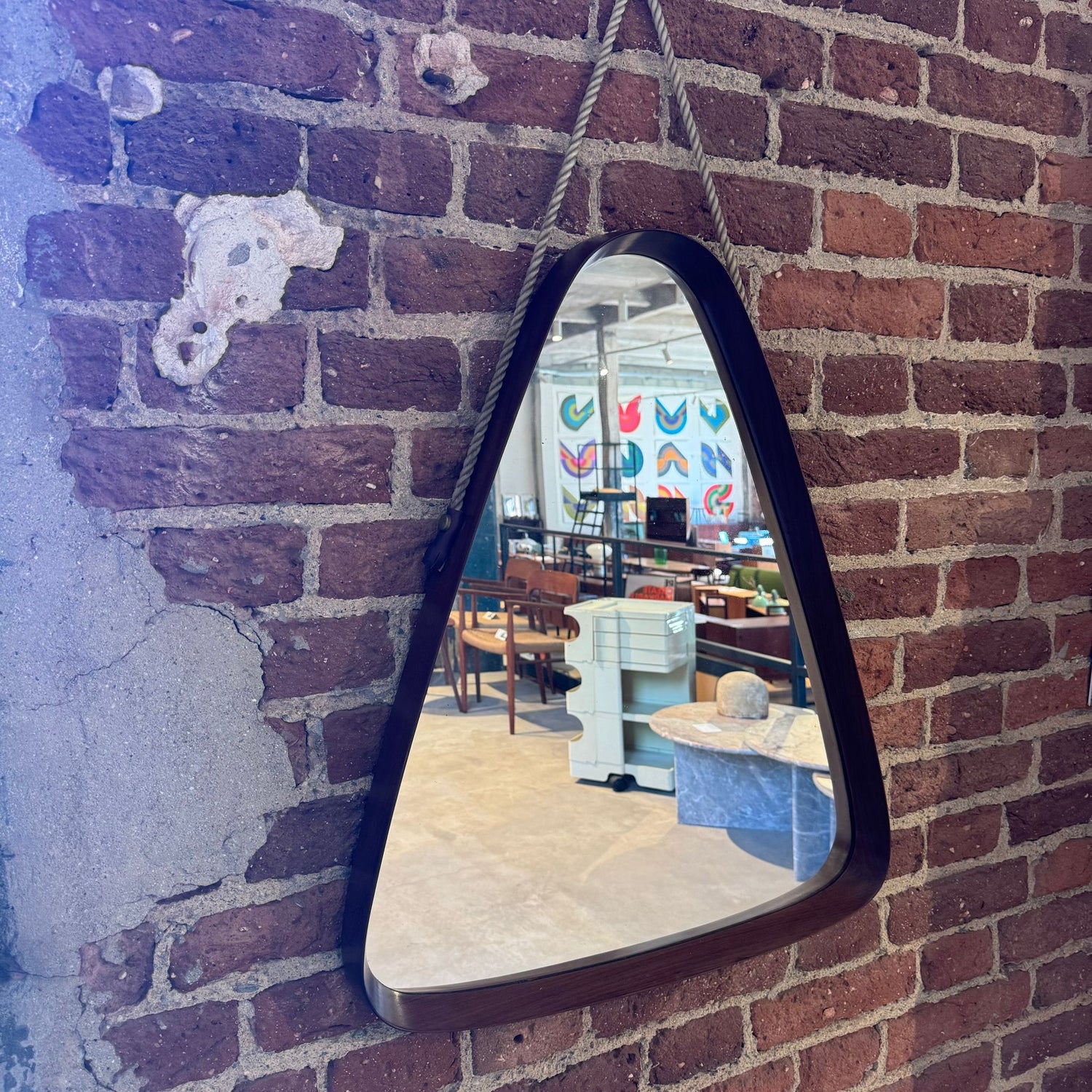 Scopri il fascino retrò con questo specchio triangolare in teak vintage, un pezzo audace che trasforma qualsiasi ambiente in uno spazio sofisticato. La cornice in legno massiccio, caratterizzata dalle venature naturali del teak, racconta storie di design senza tempo. La forma geometrica insolita cattura lo sguardo e riflette luce in modo affascinante, creando profondità e movimento. Perfetto per chi ama il vintage autentico e desidera aggiungere personalità alle proprie pareti. Un investimento in stile che non passa mai di moda.