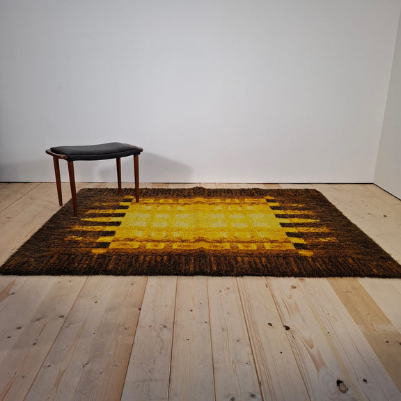 Tappeto vintage anni ’70 in lana giallo e marrone